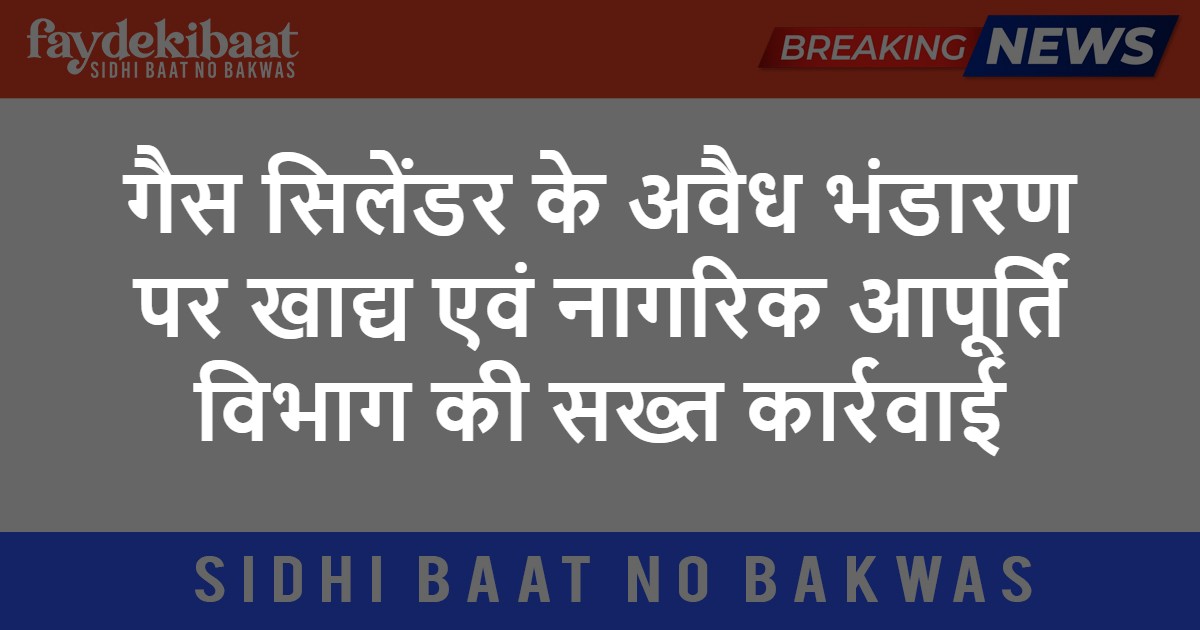 गैस सिलेंडर के अवैध भंडारण पर खाद्य एवं नागरिक आपूर्ति विभाग की सख्त कार्रवाई